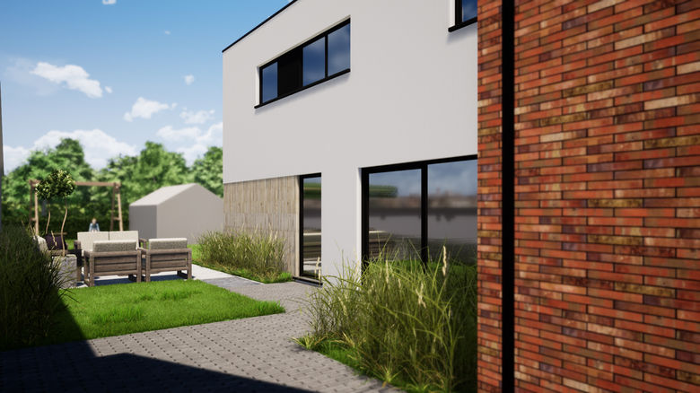 Omschrijving: de bestaande aanbouw van deze ééngezinswoning wordt voorzien van een nieuw volume bovenop om het sanitair comfort naar hedendaagse normen te kunnen voorzien. In de uitbreiding op het gelijkvloers krijgt de keuken de grootte die een jong gezin verdient. Het volume wordt afgewerkt met crepi en een accent in houten bekleding. Het bestaande volume van de woning wordt voorzien van isolatie en een nieuwe gevelsteen, alsook strak aluminium buitenschrijnwerk.