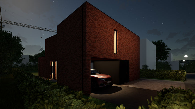 Omschrijving: In een rustige nieuwe verkaveling in Evergem wordt deze moderne woning op traditionele wijze gebouwd, met de nodige aandacht voor oriëntatie en lichtinval, alsook met toepassing van de hedendaagse technieken. De open carport aan de voorzijde zorgt tevens voor een overdekte inkom. De achterzijde van de woning wordt maximaal opengetrokken voor het zicht op de tuin. Door hier met een oversteek te werken, wordt de oververhitting van de woning vermeden.